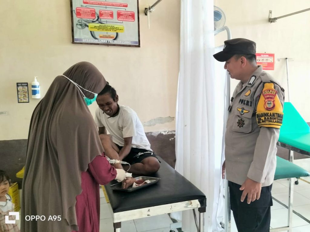 Peduli Sesama, Bhabinkamtibmas Kelurahan Sabintang Antar Korban Luka ke Puskesmas Pattalassang